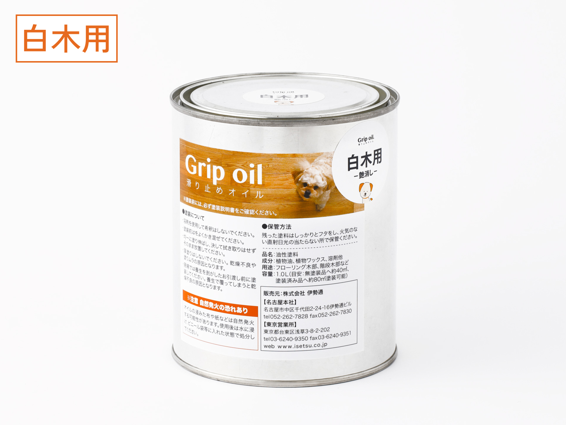 グリップオイル白木用は、針葉樹や白木フローリング向けに開発された、全艶消しタイプの滑り止め自然オイルです。